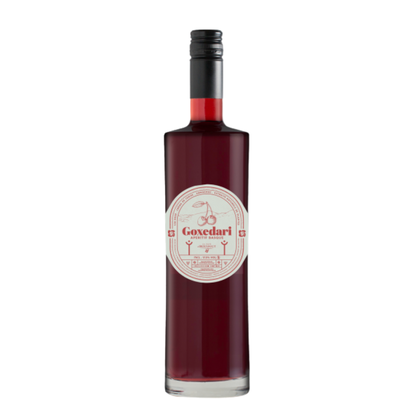 Vin rosé AOP Irouléguy des adhérents de la cave d'Irouléguy, crème de cerise, armagnac et extrait naturel de plantes. Recette traditionnelle élaborée au cœur du Pays Basque,"Goxedari" vous étonnera par son rondeur et ses notes de cerises.